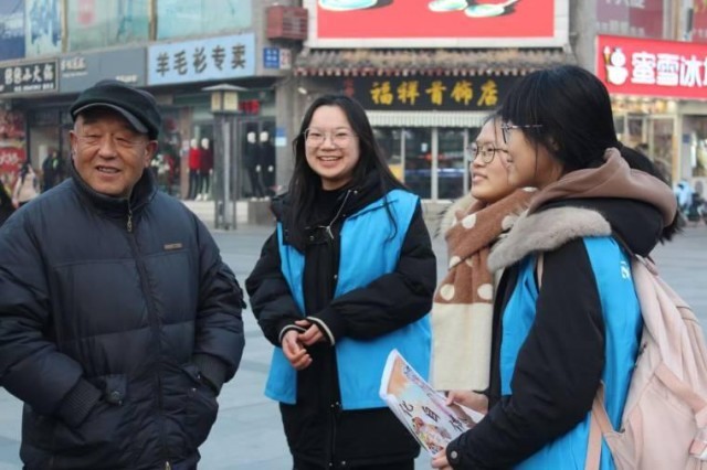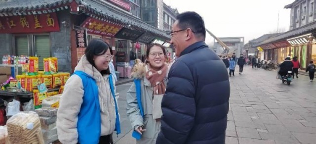 1月13日,曲阜师范大学新时代文明传习志愿者服务实践队到三孔景区开展价值观调查、科普活动。