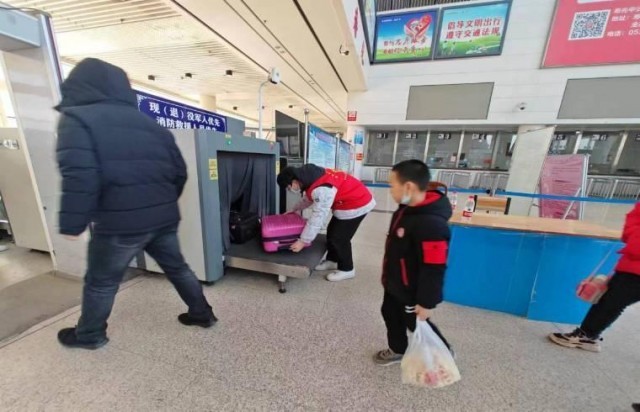 图为志愿者帮助游客过安检。大学生网报通讯员 李翔宇 供图