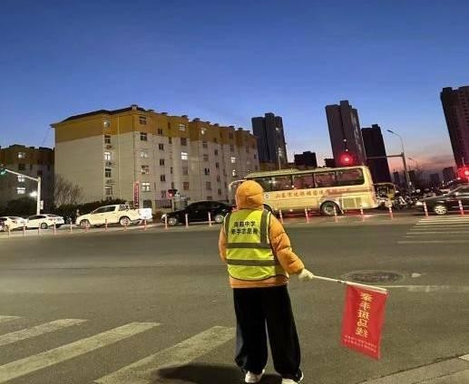初等教育系小学教育专业2023级2班张肖迪在日照海曲中学引导行人在规定区域有序等待,保证学生们进入学校和离开学校不拥挤,不聚集,确保上下学交通秩序。