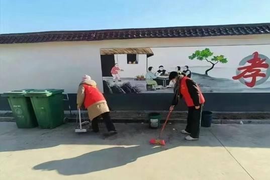 图为实践队员对整个养老院内外的卫生进行打扫。大学生网报通讯员 孙文哲 供图