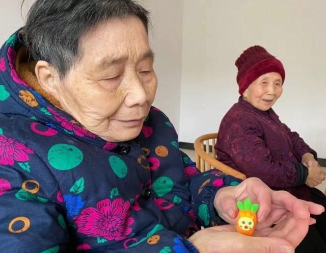 图为老人展示粘土手工的成果。大学生网报通讯员 孙文哲 供图