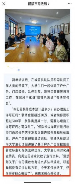 大学生“送法下乡”活动——“执法体验日” 沉浸式体验 零距离学法(醴陵市司法局2024-01-26湖南)https://mp.weixin.qq.com/s/K_mp2wcSchAwh6TvnVZB5w