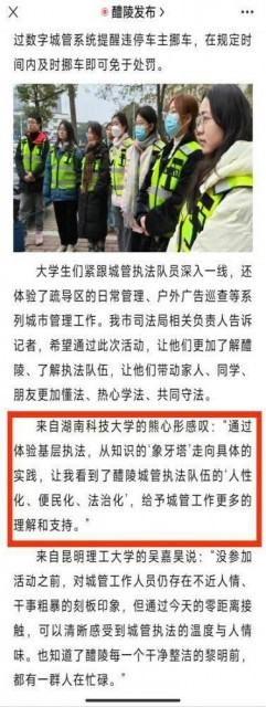 大学生体验“一日城管” 感叹“真不容易!”(醴陵城管2024-01-26湖南)https://mp.weixin.qq.com/s/ycEjxIyhjP4XfV5s7PEsfg