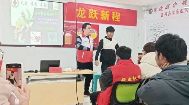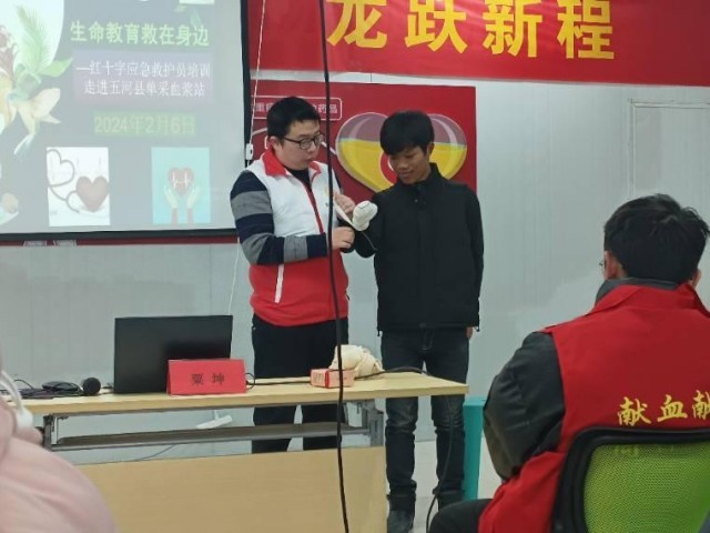 为提高应急救援能力,筑起生命防线以及进一步了解红十字精神。2月5日,安徽工业大学电气学院智能感知工程专业学生刁治民前往蚌埠市五河县单采血浆站开展红十字救护员培训社会实践活动,通过老师的理论指导,线下实操等方式学习急救技能。