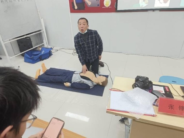 图为老师讲解心肺复苏 大学生网报通讯员 刁治民 供图