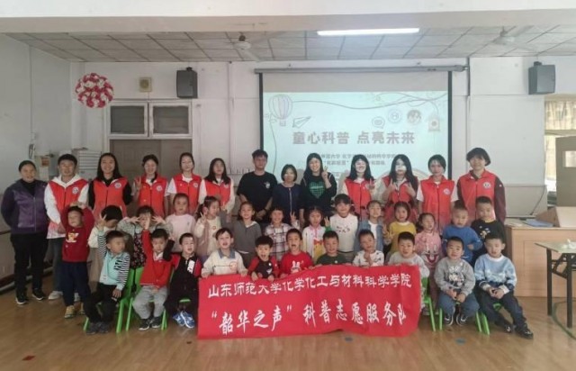 为全面贯彻党的二十大精神,满足儿童多样化的科普需求,激发科学兴趣,培养科学思维,提高科学素养和动手实践能力,4月8日,山东师范大学化学化工与材料科学学院“韶华之声”科普志愿服务队一行八人走进山东师范大学附属幼儿园开展“童心科普,点亮未来”实验科普活动,为孩子们打开化学启蒙的大门,用全新的视角认识世界。
