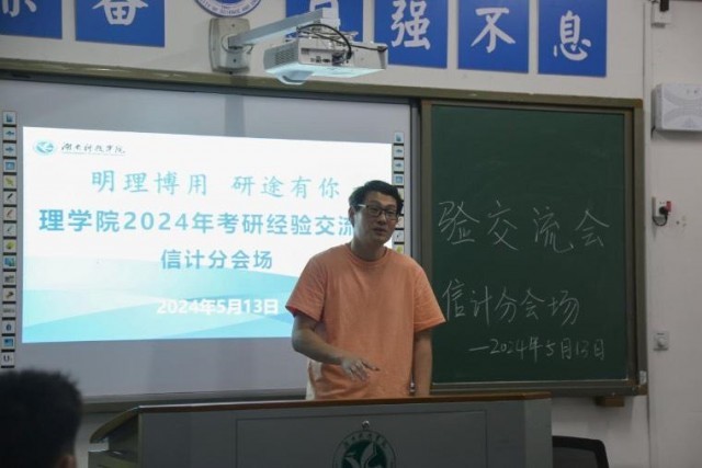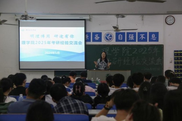 本网讯(通讯员刘浩)为增强同学们的考研信心,坚定考研信念,5月13日晚,理学院于明理楼202主会场及204、205、207三个分会场举行以“明理博用‘研’途有你”为主题的2025年考研经验交流会。理学院院长李小武、党总支书记刘华、副院长吴清华、党总支副书记欧阳素勤等领导老师出席会议,交流会由年级辅导员龙枚樱主持。