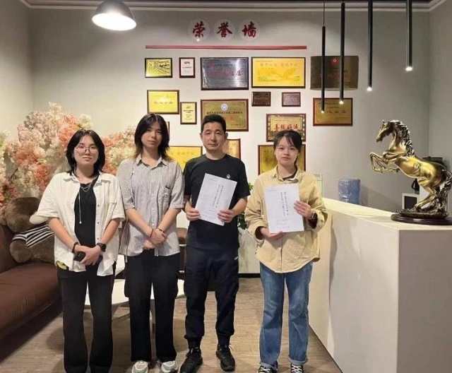 图为项目成员与企业负责人合照 黄嘉琦 供图
