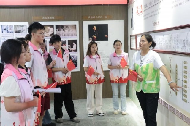 图为讲解员为队员们讲解周恩来生母生平事迹。大学生网报通讯员 邱晨 供图