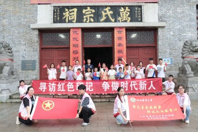 大学生网报南昌7月2日讯(通讯员 邱晨)7月2日,江西农业大学人文与公共管理学院筑梦起航支教队走进南昌县向塘镇合气村寻访周恩来生母故居地,在万氏宗祠中了解万冬儿的生平事迹,传承并发扬红色文化精神和中华民族精神。与此同时,我们依然坚持开展爱心支教活动,通过文体活动与孩子们零距离交流,打破队员们与孩子们的隔阂,促进留守儿童健康成长,助力乡村教育振兴。