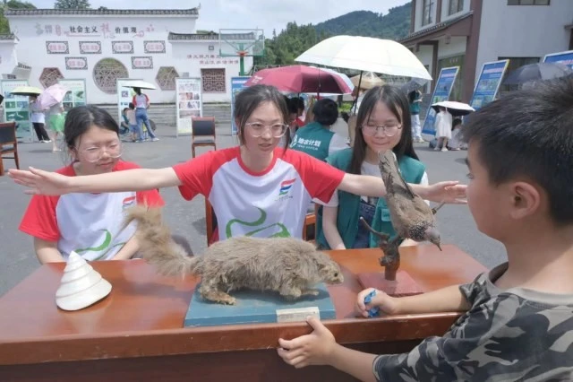科普活动中,志愿者们带来了多种多样的动植物标本及展板,利用自身学科优势,在讲解标本的基础上,运用“看家本领”积极拓展生物学科知识,使村民们对于武陵山区丰富的自然生物资源有了更深层次的认识。
