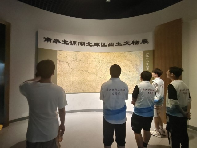图为小水滴守水护水志愿服务团成员观看南水北调库区出土文物。大学生网报通讯员 文举相