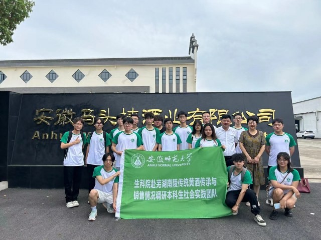 7月9日,安徽师范大学“生科院赴芜湖南陵传统黄酒传承与销售情况调研”本科生社会实践团队,前往南陵进行实践调研。出发前实践团队队员进行了合影,并筹备了准备工作。到达南陵酒厂后,团队队员收到了酒厂负责人的热烈欢迎。在酒厂文化馆门前进行合影后,学生们首先来到了黄酒厂的原料仓库,了解了黄酒的主要原料——糯米、小麦等的储存和挑选过程。随后,他们参观了黄酒的酿造车间,亲眼目睹了黄酒从原料到成品的整个生产过程。向学生们展示了黄酒的制作过程,包括选料、发酵、压榨、陈酿等环节。同学们还参观了此酒业的文化馆,此酒业作为徽派黄酒的代表性企业,深入了解了徽派酒文化的历史和发展。最终,负责人向实践团队表达了酒厂对实践团队的期许,并且交换了宝贵意见,在简单的会议后,此次活动圆满结束。