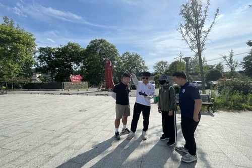 (图为帮扶团成员朱嘉汝(左二)操作无人机图片)
