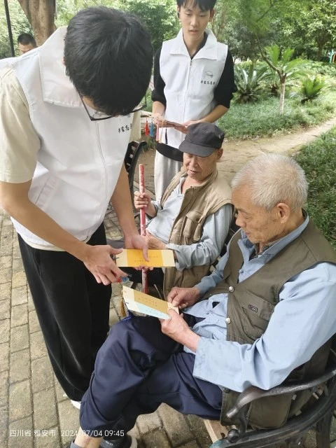 7月4日,小队成员前往石马社区宣讲,以进行关于书法国画文化解说的方式在小区内设点增进社区居民对书法国画的了解,同时递发卡片和书签,展示蕴含于书画文化中的独特魅力。尽管一开始居民们都对书画了解不多,但经过小队成员的耐心讲解,居民们都对传统的书画艺术有了进一步了解并挑选了自己喜欢的书签作为纪念。