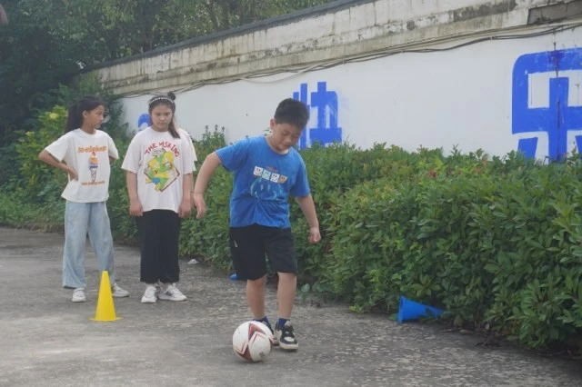 (图为篮球班同学们在认真练习拍球 王依纯摄)午后,雨势稍歇,绿茵场成了孩子们的新天地。孩子们穿着统一的运动服,脚踏着崭新的足球鞋,在绿茵场上奔跑着、欢笑着。他们或许技术还显稚嫩,但那份对足球的热爱与投入却无比真挚。足球老师阮天祥不时地给予鼓励和指导,他用自己的行动诠释着足球不仅仅是一项运动,更是一种团队精神的体现和个人意志的磨砺。