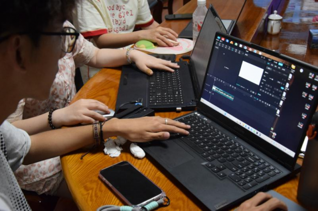 图 3团队正在进行后期剪辑 通讯员 张蕙兰 摄