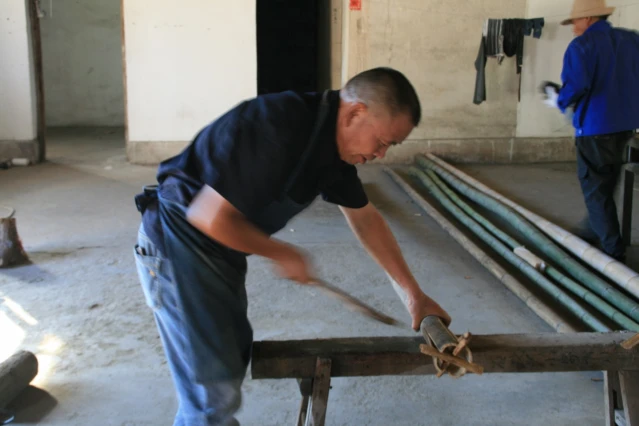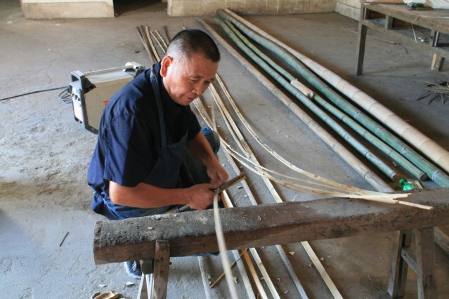 董叔叔向他们展示了竹编艺术品的制作工艺,展示了竹编的一部分制作过程:选竹、去青、分片与劈丝,一把锋利的刀,在董师傅的手中仿佛有了生命。