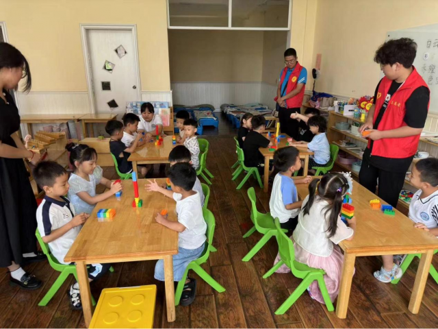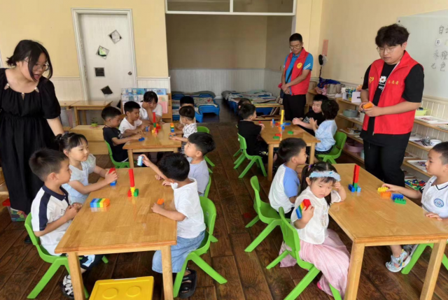 为进一步提高孩子们的动手能力、动脑能力、沟通能力、创造力,2024年7月18日,曲阜师范大学“教育守望,智汇归巢”社会实践队员们在暑期为幼儿园的同学们开展了乐乐箱主题拼搭课。