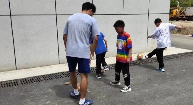 在足球教学中,志愿者将足球传球的动作技巧、发力方式、注意事项等传授给小朋友,并做了正确和错误两种示范,让小朋友对传球技术牢记在心中。小朋友们悟性很高,掌握动作速度很快,学到体育知识的小朋友们,就像运动员掌握了致胜秘籍,眼睛中闪烁着激动的光芒,心中满是收获的开心。