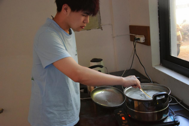图为小推车成员开始熬煮绿豆汤。 通讯员 李峥嵘 摄