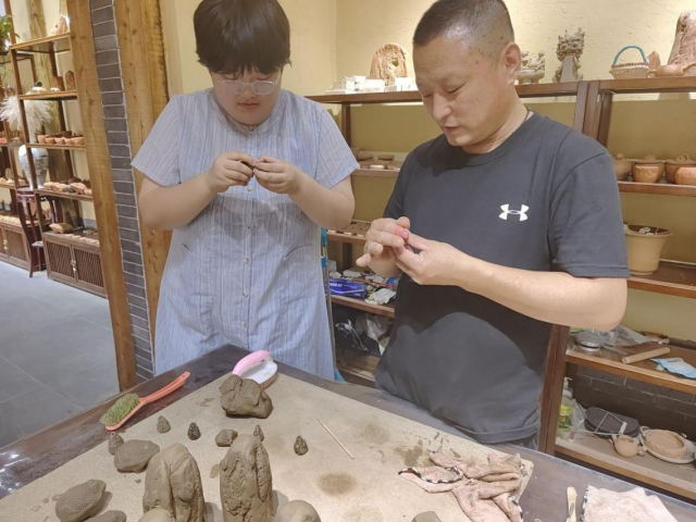 图为实践队成员在学习制作泥印 大学生网报通讯员 董浩芮 摄