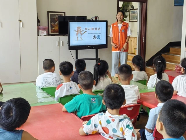 曲阜师范大学翻译学院“普语长青实践团”于2024年7月6日及10日分别前往日照市东港区中盛幸福苑养老院、三槐幼儿园及云海社区发起了“普语润童心,和音暖桑榆”活动,向中老年人及儿童普及普通话,强调普通话的重要性,同时激励成员们在各自的家乡开展了一系列普通话普及的宣传活动。旨在通过实践活动,让普通话成为更多人的日常语言。