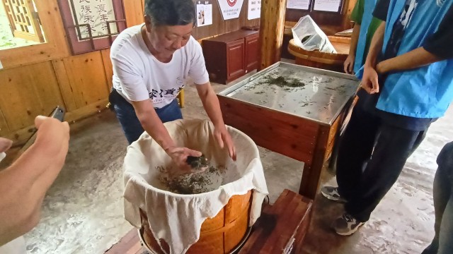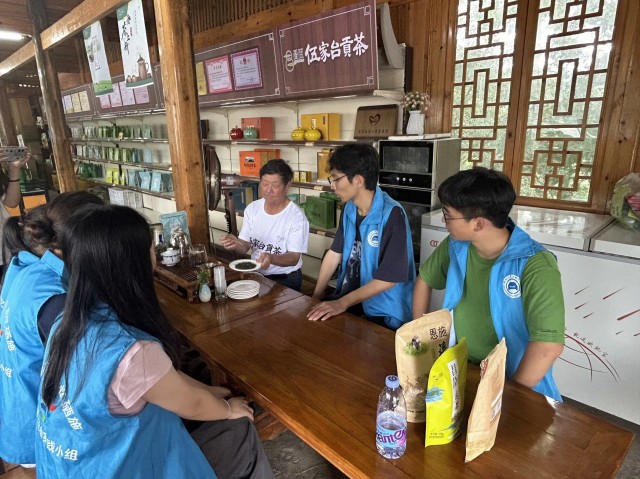 图为制茶工匠为社会实践队员们介绍制茶过程