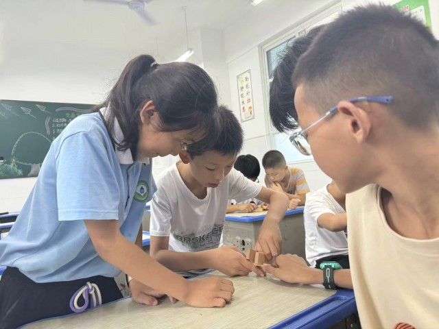 另外,星火计划志愿服务队队员还给孩子们分享了榫卯结构在古代建筑中的应用实例,以及现代建筑如何借鉴榫卯结构的优点进行创新设计。这些演示不仅让学生们领略到传统工艺的魅力,还激发了他们对传统文化的热爱和增强了他们的传承意识。