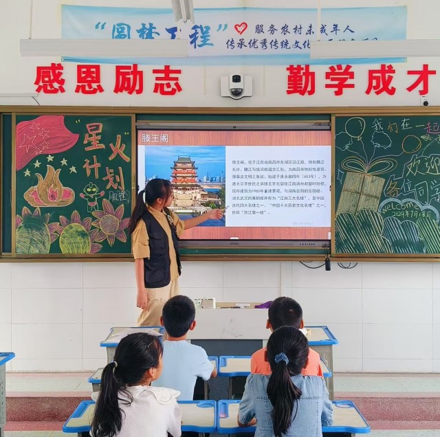 图为队员给学生们讲解榫卯结构在古代建筑中的应用 星火计划志愿服务队 供图