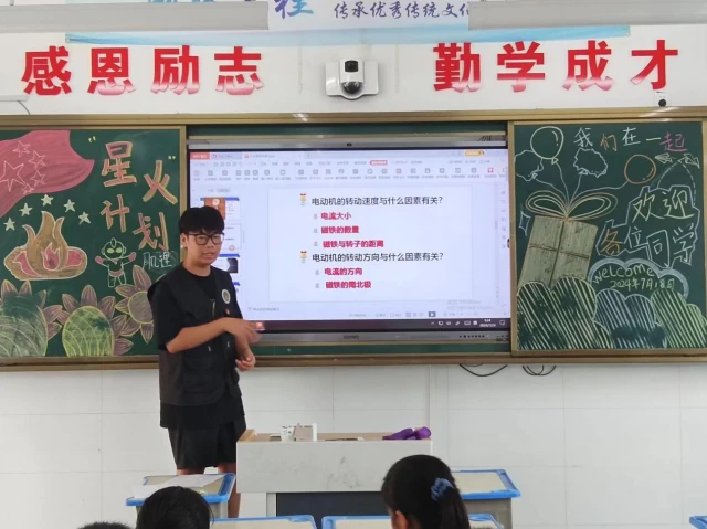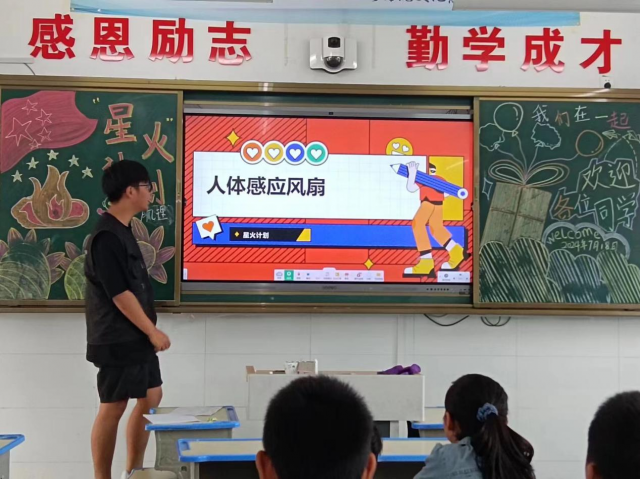 为培养乡村儿童科学创新意识,点燃乡村儿童科技梦想。2024年7月,星火计划志愿服务队在十堰市郧阳区杨溪铺镇青龙泉学校为学生们带来了一堂生动有趣的人体感应风扇课程,通过讲解基本原理并演示小实验的方式,来激发孩子们对科技的兴趣。