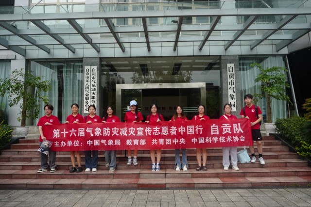 (图为志愿者在自贡市气象局门口合影 摄:朱麟文)