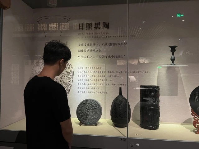 日照黑陶是龙山文化著名且典型的陶器,为感悟非遗文化魅力,弘扬日照市优秀传统文化,2024年7月24日,曲阜师范大学“薪火相传,光辉永存”社会实践队队员王朔前往中国黑陶文化博物馆欣赏并体验优秀的黑陶文化。