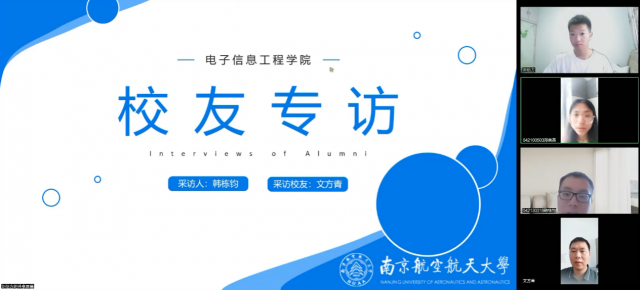 2024年暑假,南京航空航天大学电子信息工程学院“情系校友,‘芯’火相传”社会实践团队再度出发,寻访优秀校友,重温南航故事。文方青校友接受了团队采访,向南航学子分享了宝贵经验,并致以亲切问候。