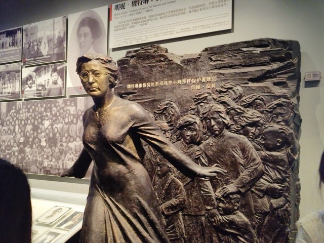 图为魏特琳女士保护金陵女学生雕像 范心恬 杨文静摄
