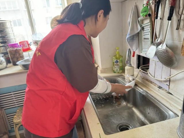 图为实践队队员帮助老人刷碗 大学生网报通讯员 沈鹏 供图