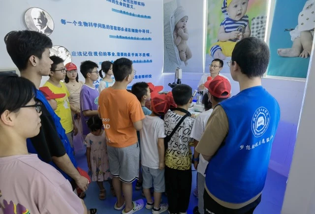 图为小朋友观察胚胎发育过程。周逸杰 供图