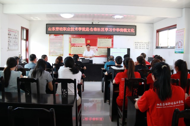 为弘扬中华传统文化,感受千年力量,7月12日,山东劳动职业技术学院“寻访·探忆·筑梦”中华文化传承团特邀请孔子第76代孙孔为峰老师一起走进鲁城街道仓巷社区,将儒学讲堂搬进社区,让传统文化飞进寻常百姓家。