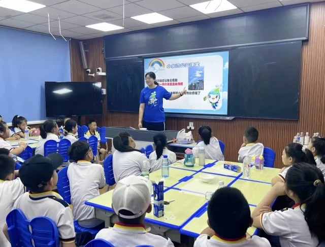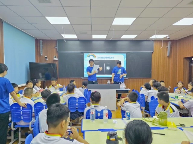 7月22日上午,“青春兴泰来”小水滴公益实践团的小赵老师、饼干老师、欧阳老师和小孙老师为泰来县实验小学的小学生们带来了他们准备已久的精彩课程——《初步认识光》。
