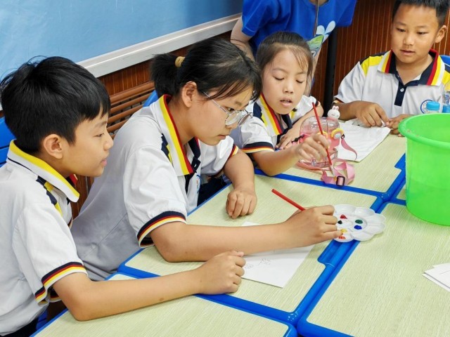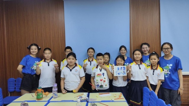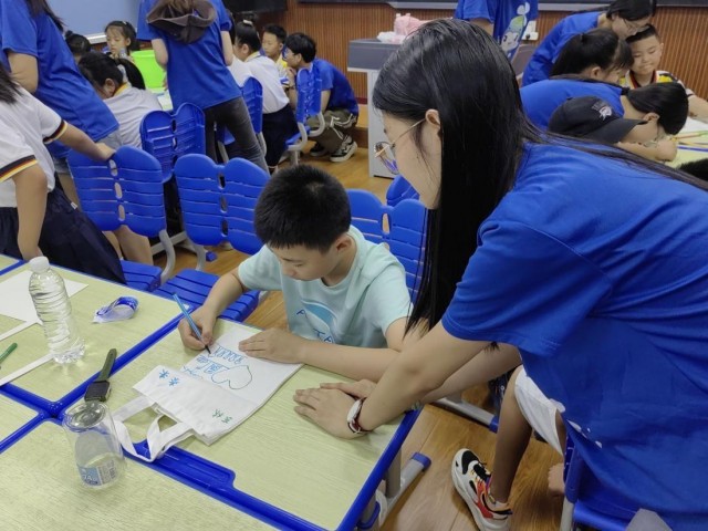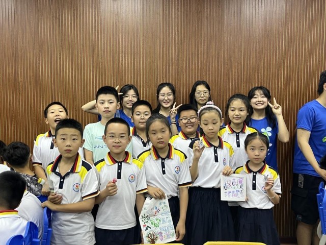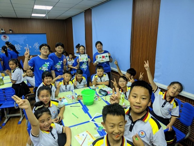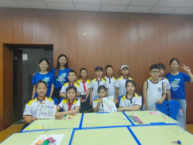 在经历过室外的趣味游戏后,小朋友们之间有了一定程度的熟悉,接下来,团队成员为了提高小朋友们之间的合作精神,还为大家准备了室内的绘制“心中的东林与泰来”与“全家福”的活动。