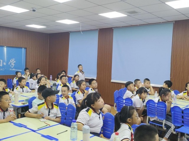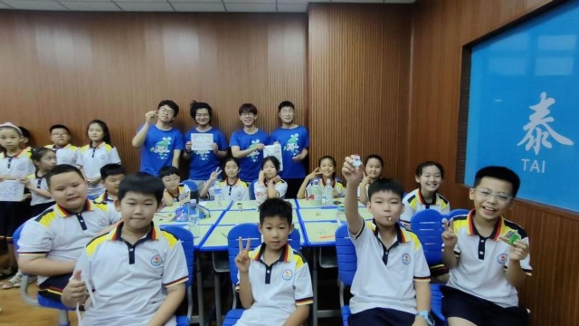首先,由罗锦霞同学主持开展了团队成员与小朋友的见面会,她先通过提问的环节让同学们猜测“青春兴泰来”小水滴公益实践团队来的目的,以此来活跃现场气氛,之后团队成员分组上台来进行自我介绍,使小朋友们对老师们有了初步的认识。