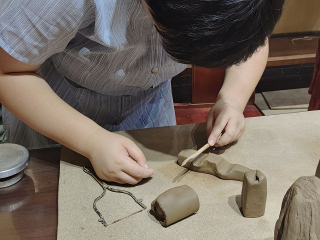 图为实践队成员学习体验澄泥印的制作过程 大学生网报通讯员 董浩芮 摄