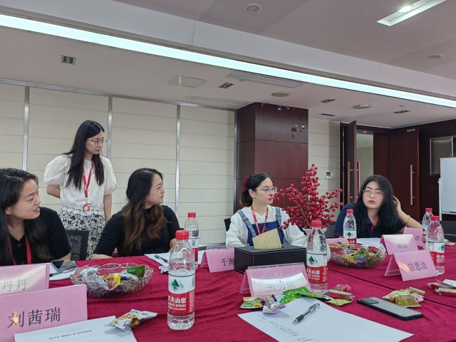 图为实践队员正在与员工交谈,深入了解教育的意义。通讯员 刘茜瑞 供图