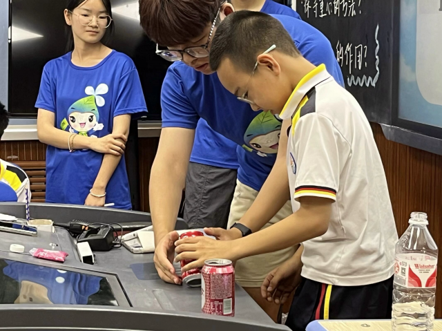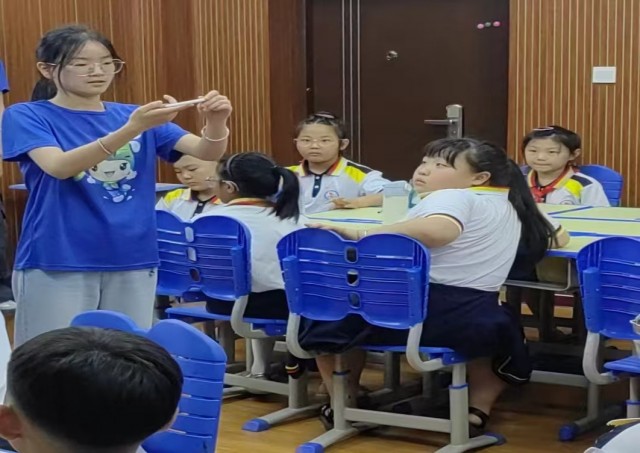 7月20日下午,“青春兴泰来”小水滴公益实践团的睿睿老师、小旭老师和欢欢老师为泰来县实验小学的同学们带来了他们准备已久的精彩课程——《神奇的重力》。