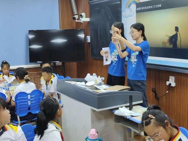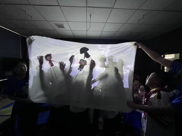 最后,小朋友们开始用手电筒和幕布进行皮影戏的展示。整个实验过程中,小朋友们不仅学到了制作皮影戏的技巧,还锻炼了自己的动手能力和创造力。