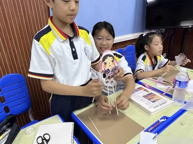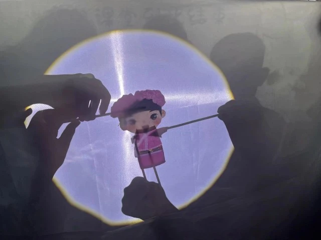 图为小朋友一起表演皮影戏