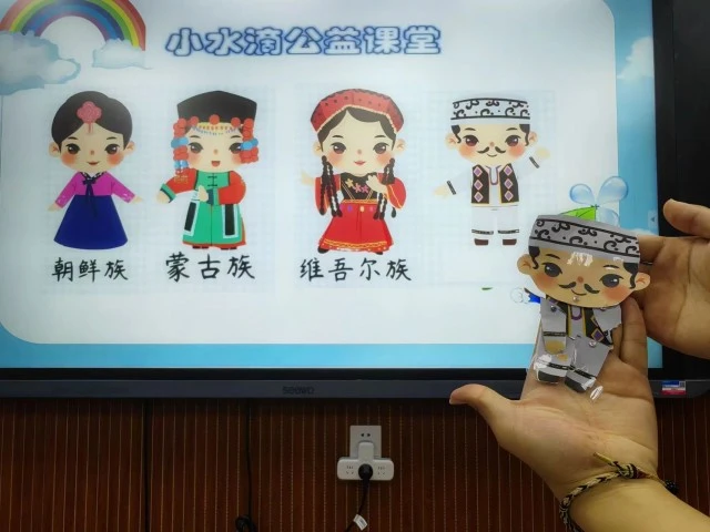 图为小朋友们了解民族