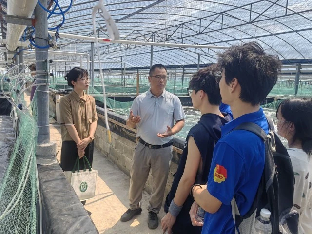 随后,在刘智武先生的热情接待和详尽解说下,实践队成员对闽辉智公司独特的养殖方式及其背后的理念——为何选择工厂化养殖虾类,有了全面而深刻的认识。随后,刘总亲自陪同参观了养殖场的先进设备,展示了高效的养殖模式和当前养殖业的蓬勃现状,让队员们大开眼界,同时也为他们未来的职业规划点亮了新的灯塔。