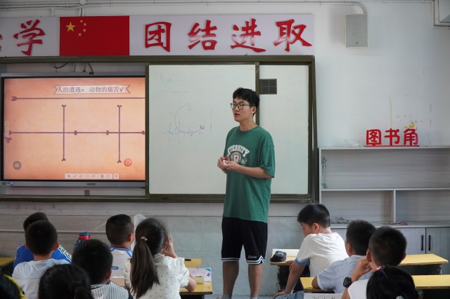 为全面贯彻全国教育工作会议精神,提高学生综合素质,培养学生对大自然的感知力,7月30日,华中农业大学资源与环境学院花儿与少年支教队在秭归县经济开发区小学开展“创新型双线科普”教育活动。本次活动特邀长江水产研究所鱼类研究者高子明、华中农业大学牧医阳光志愿服务队队员崔桐恺、华中农业大学水产科普协会前核心工作人员闫骊行。