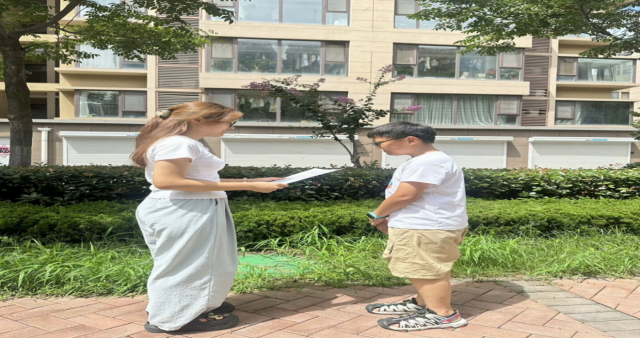 图为对学习编程课程的小学生进行访谈 大学生网报通讯员 曹晓雨 供图